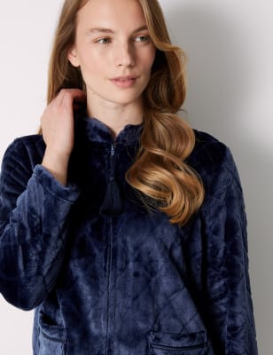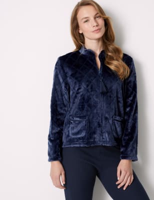 FREE delivery 1318 for shipping import fees deposit. Featuring a zip front and two side pockets this jacket is an effortless addition to any wardrobe. 6TY75 - Cable 34 sleeve Wrap 7495. 6TY79 - Cable mid length 34 sleeve gown 7495. Soft Feel Embossed Fleece Nightwear in 3 Styles Zip Gown Button Dressing Gown or Bed Jacket. Womens Bed Jacket is extremely soft warm and comfortable. 5GL76 - Button up bed jacket 7995.